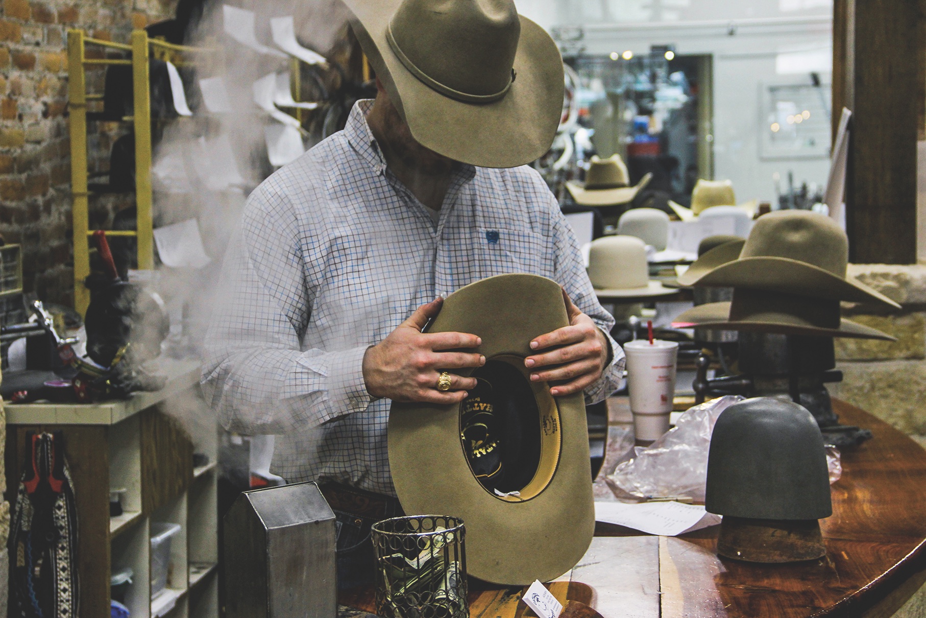 Catalena Hatters in Bryan, Texas, is renowned worldwide for custom felt and straw hats for men and women. Founded in 1983, the company is well-known for custom Gus felt hats, the style Robert Duvall made famous in Lonesome Dove. Courtesy Catalena Hatters