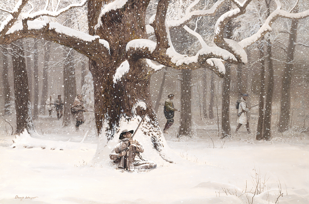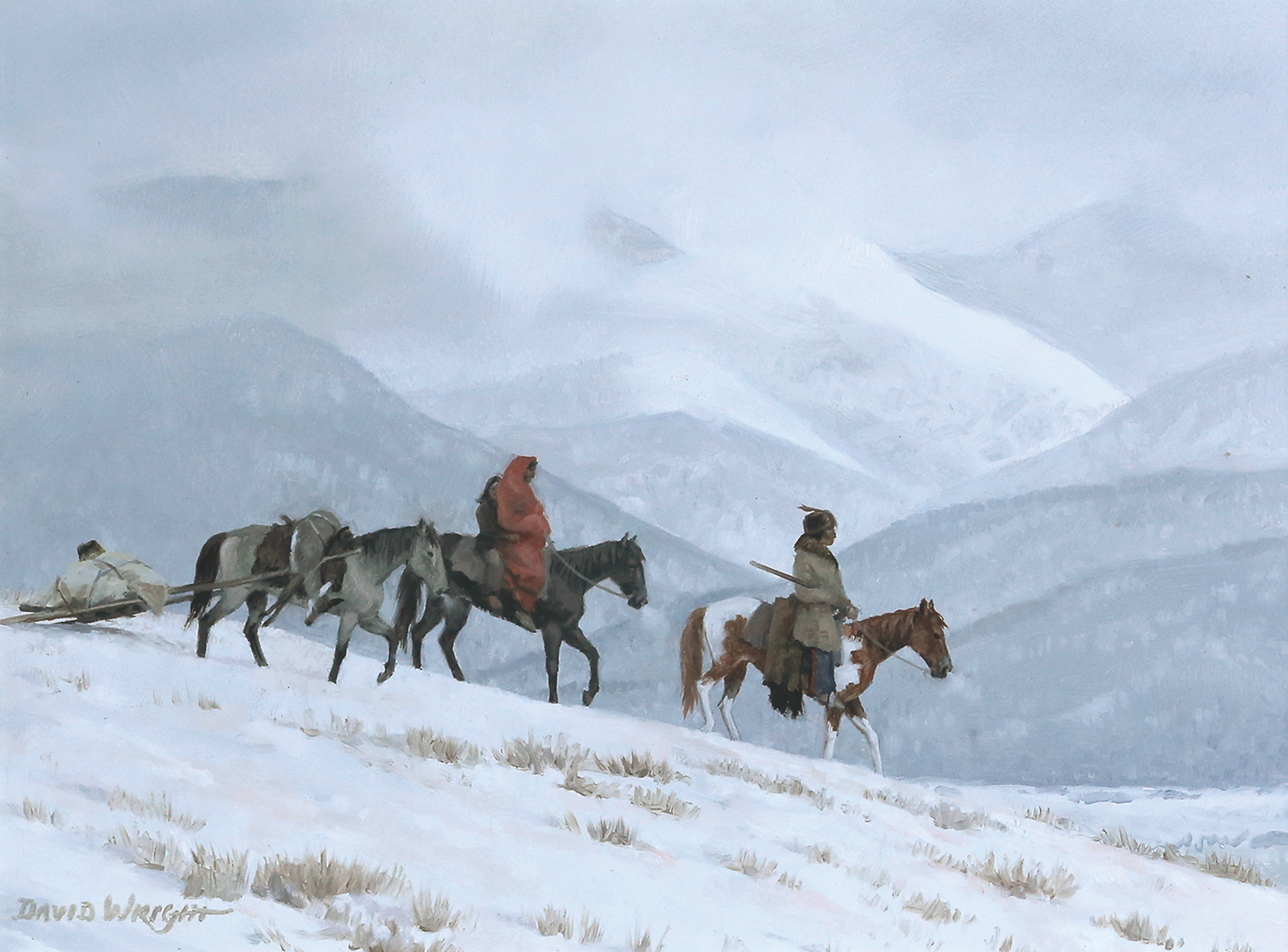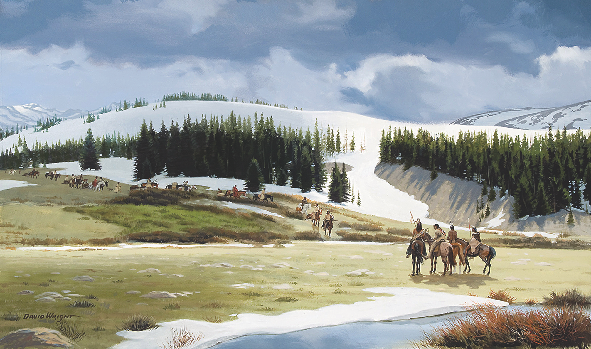 David Wright loves packing into the mountains and woods like an early American pathfinder and trapper almost as much as he loves painting them. He also loves painting the Native people of the Eastern woodlands and Western mountains and plains who traversed the areas, traded, allied and fought with each other during the 1820s-1840s, America’s fur trapping era.