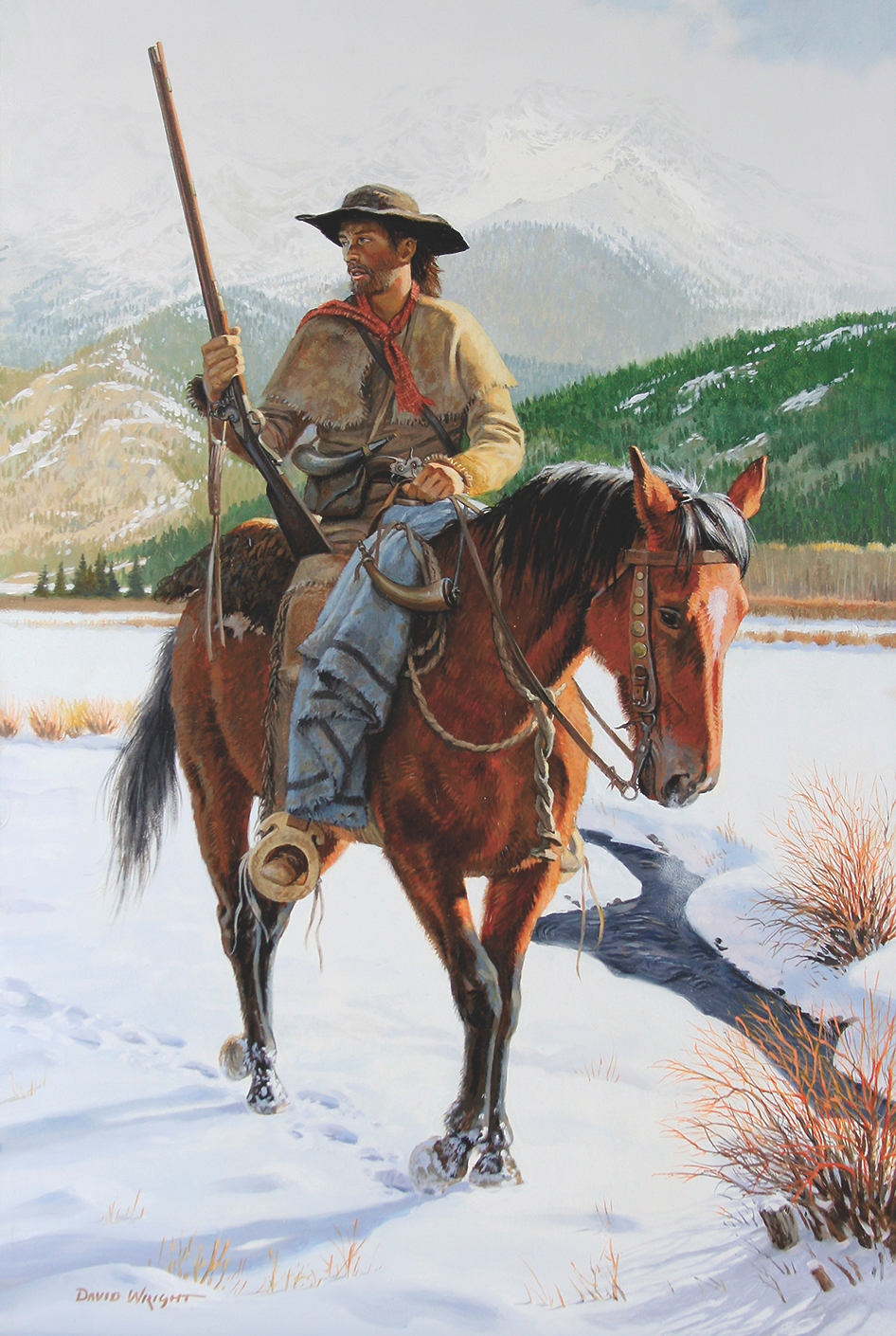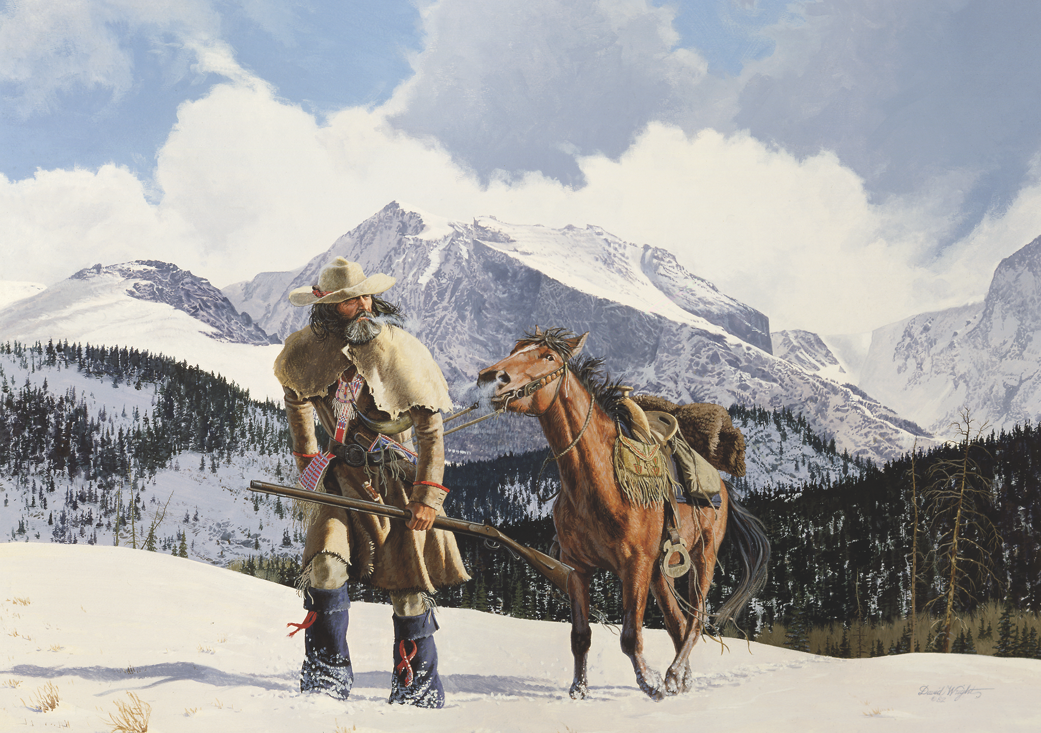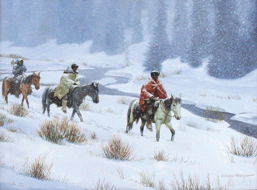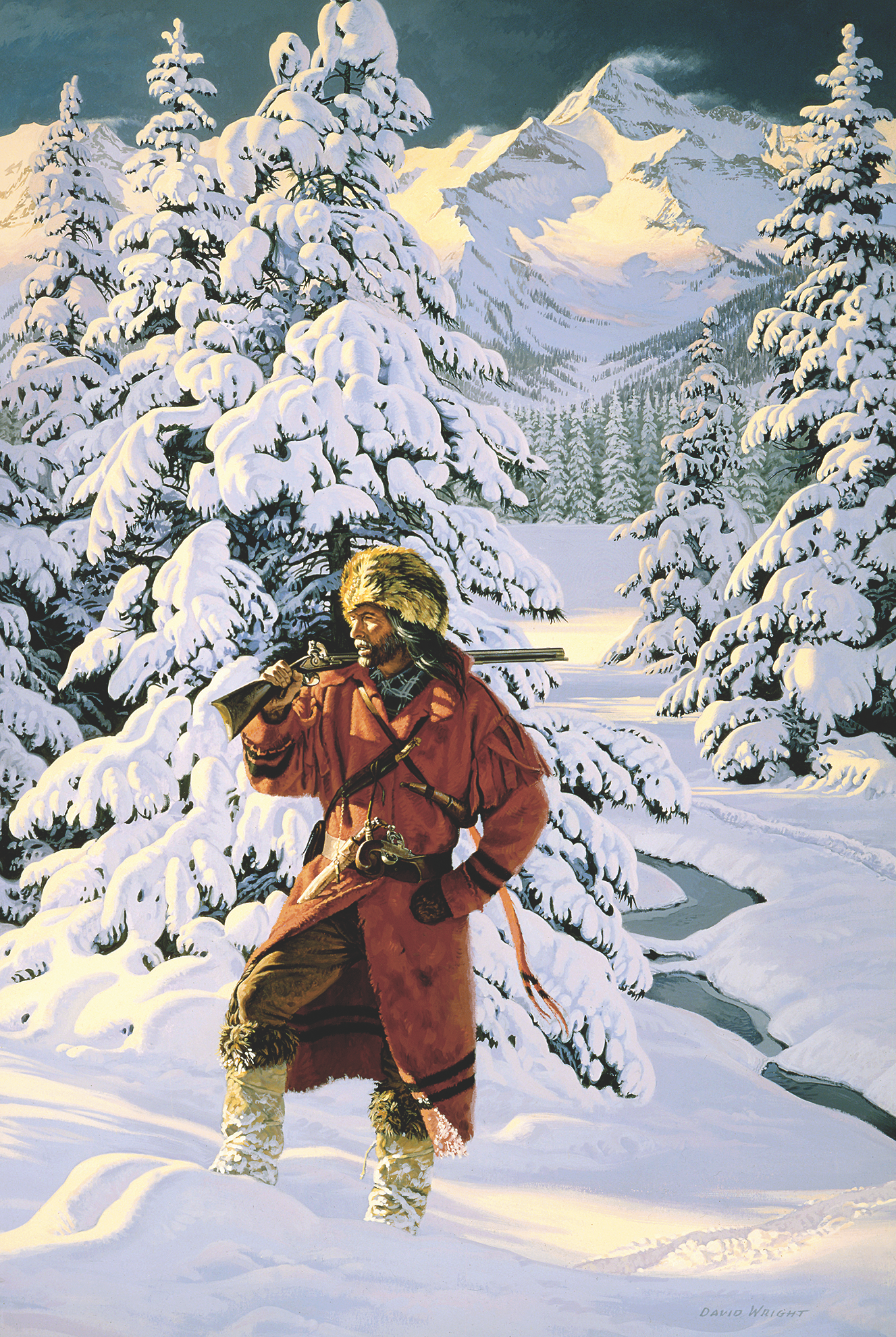 We believe Wright’s artwork captures the adventurous spirit, rugged determination and survival skills of the mountain men, fur trappers and American Indians who plied the streams and trails to trap and trade even through the fiercest conditions of winter.